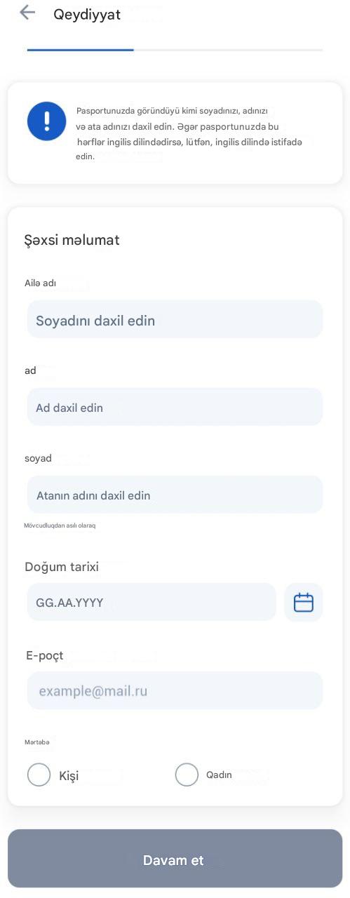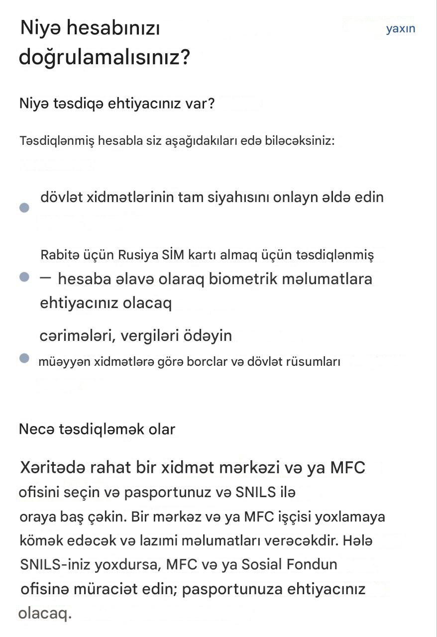 Qeydiyyat zamanı hesabın təsdiqlənməsi barədə əlavə məlumatı tətbiqin özündə də öyrənə bilərsiniz.