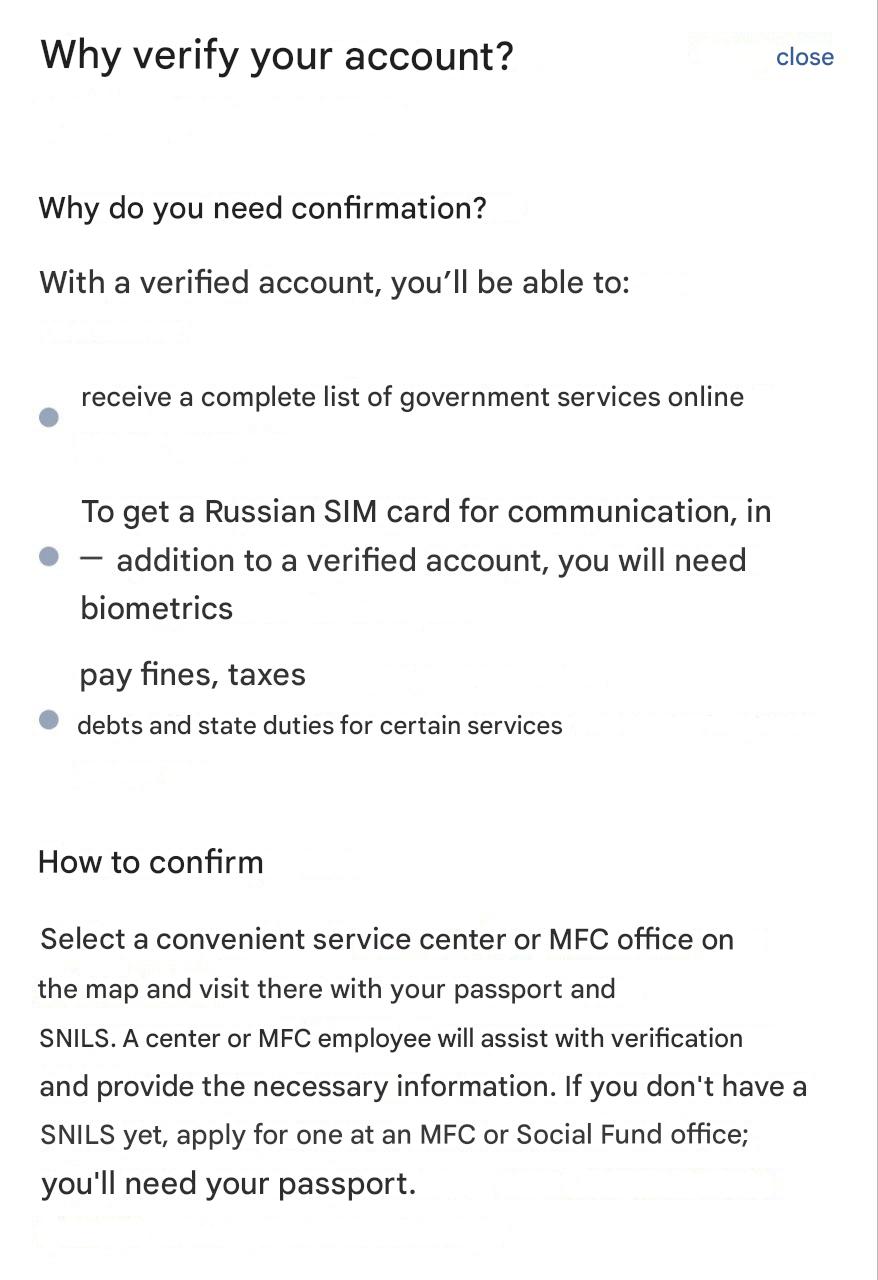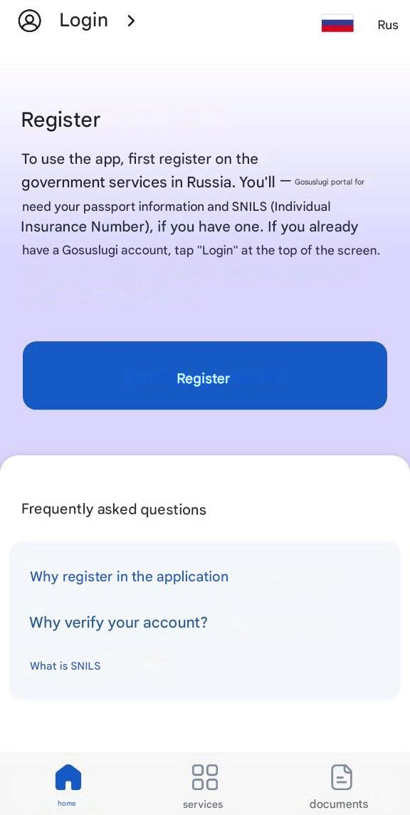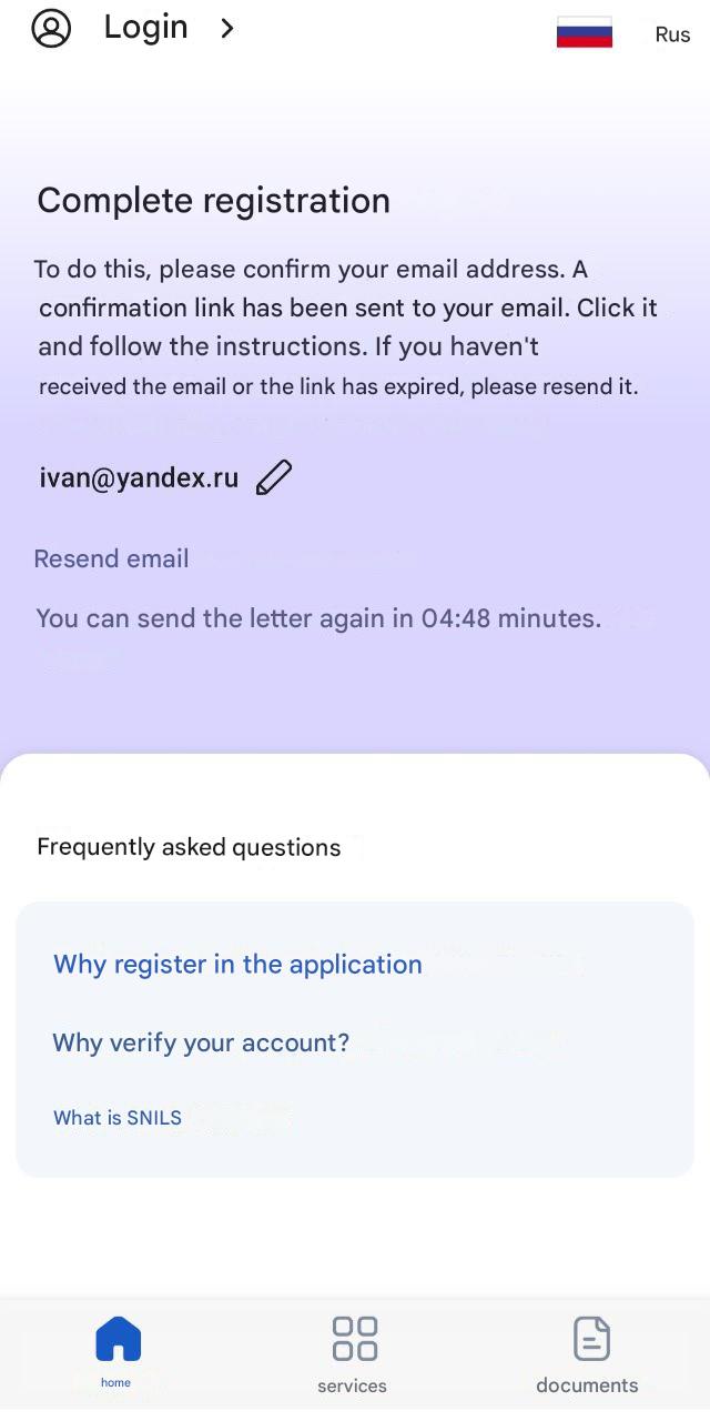 ⚠️ Note: If you already have a Gosuslugi account but don’t remember the password and try to register in RuID as a new user, issues may occur. The app will detect your existing account via SNILS or email. To complete registration, you’ll need to provide different details or reset your password.