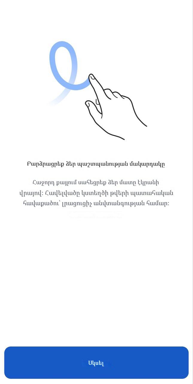 - Սեղմեք “Register” կոճակը և համակարգի հուշմամբ ձեր մատով էկրանի վրա նկարեք եզակի թվային օրինակ։