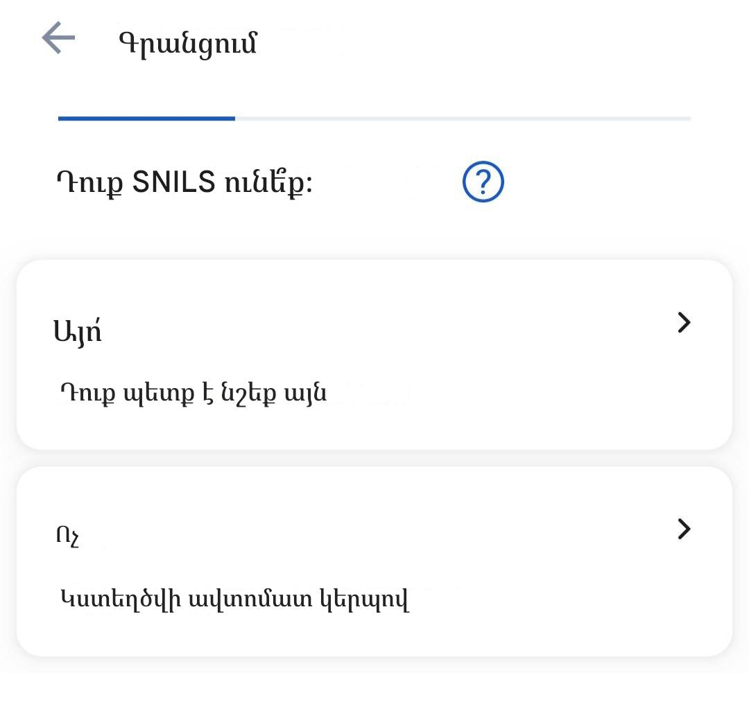 - Պատասխանեք՝ արդյոք ունեք SNILS։