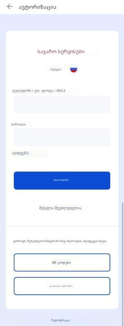 - შეიყვანეთ მომხმარებლის სახელი — ტელეფონის ნომერი, ელფოსტა ან SNILS.