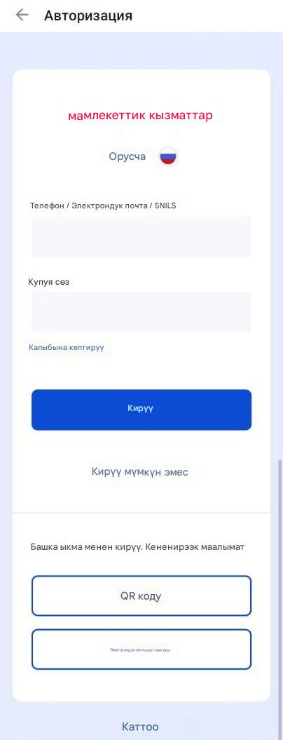 - Логинди киргизиңиз — телефон номери, электрондук почта же СНИЛС.
