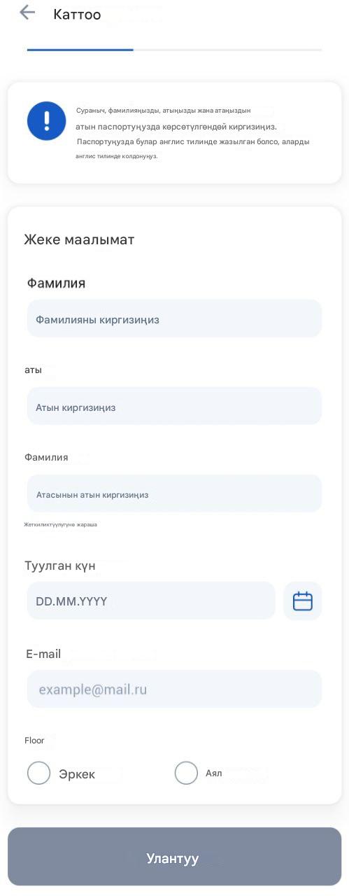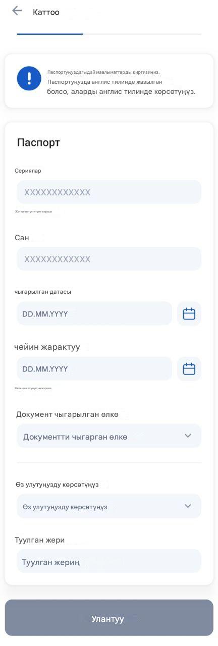 - Паспорт маалыматын толтуруңуз.