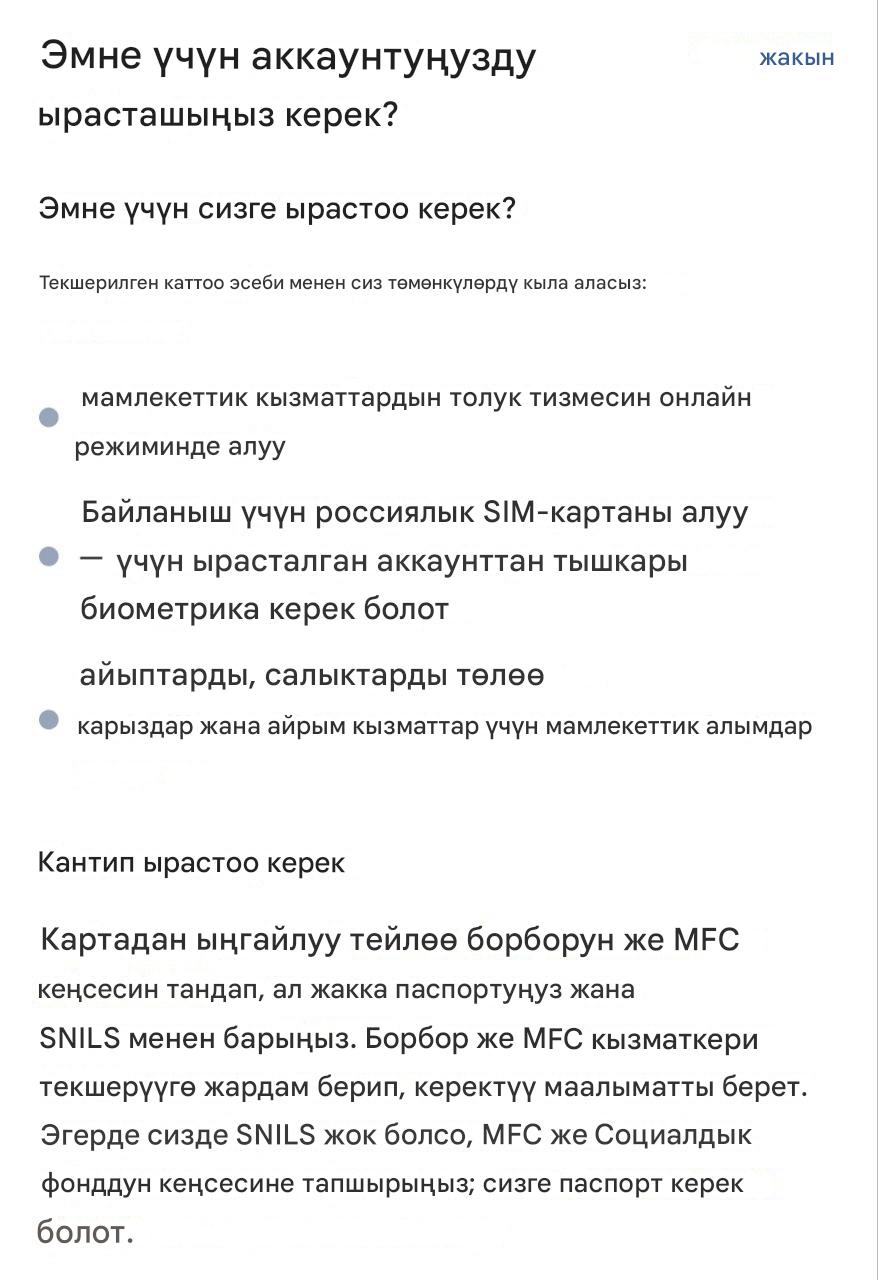 Каттоо учурунда аккаунтту ырастоо тууралуу кошумча маалыматты колдонмонун ичинде да алсаңыз болот.