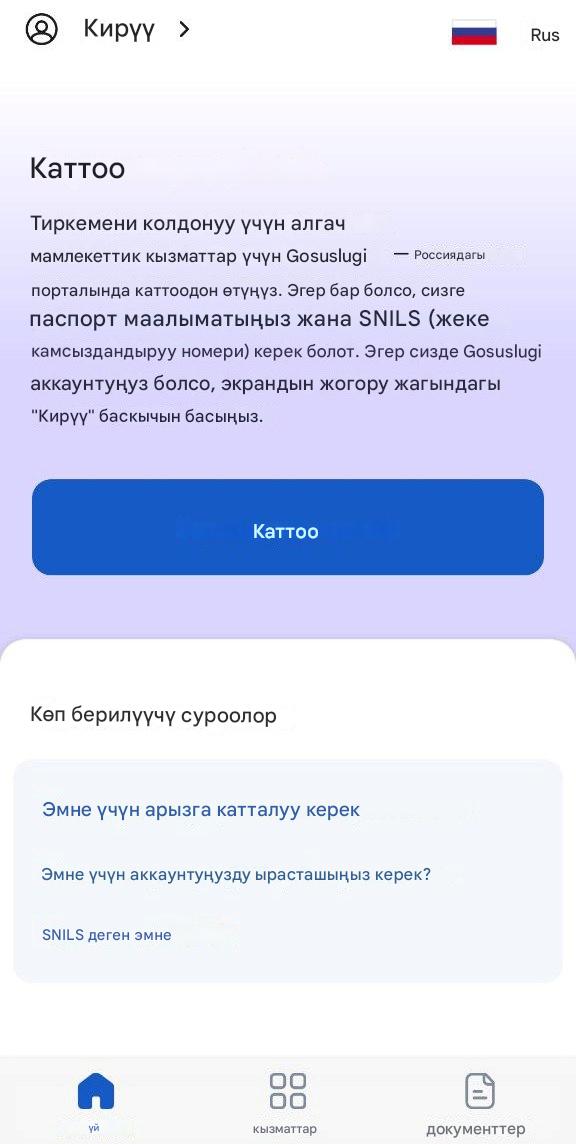 “Gosuslugi” аккаунтусуз катталуу