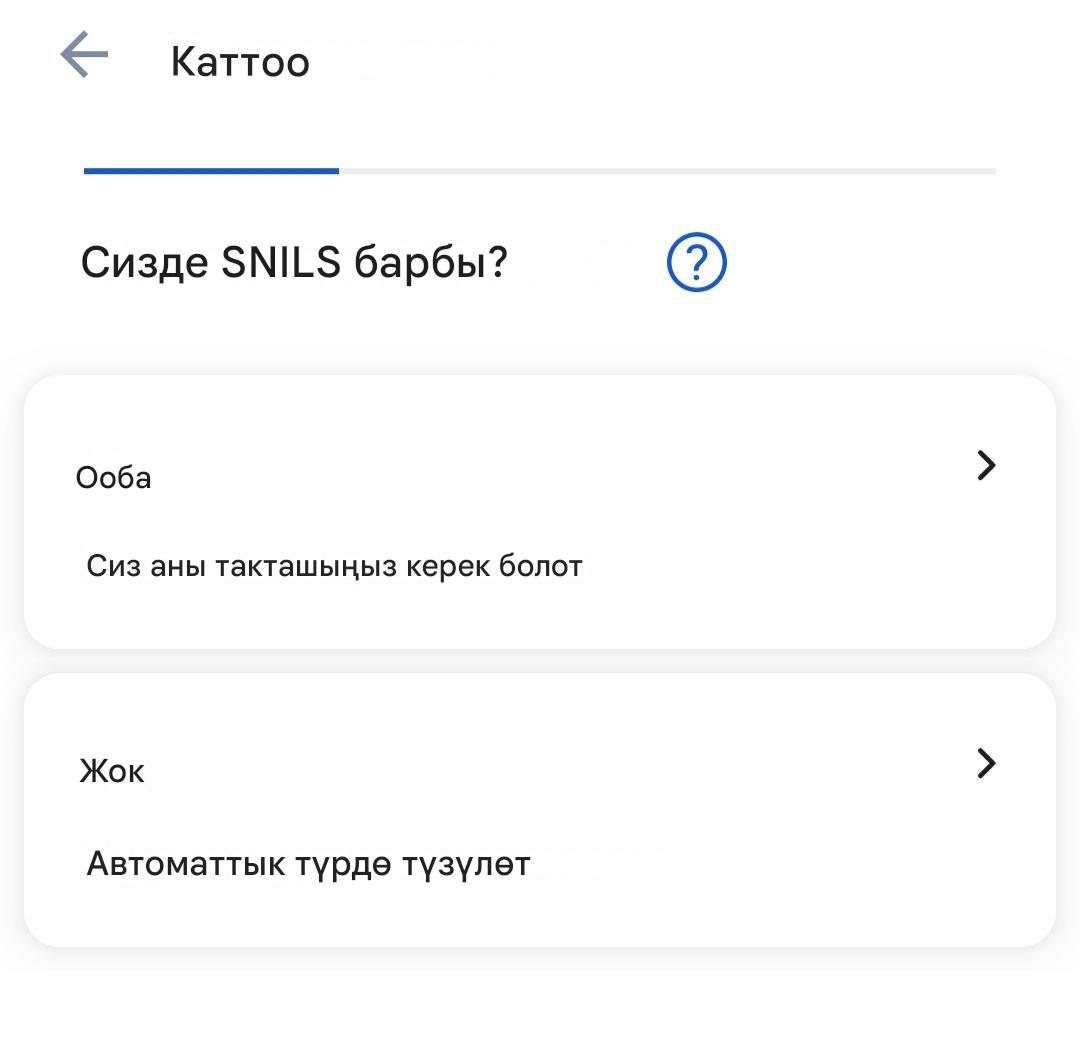 - Сизде СНИЛС бар же жок экенин белгилеңиз.